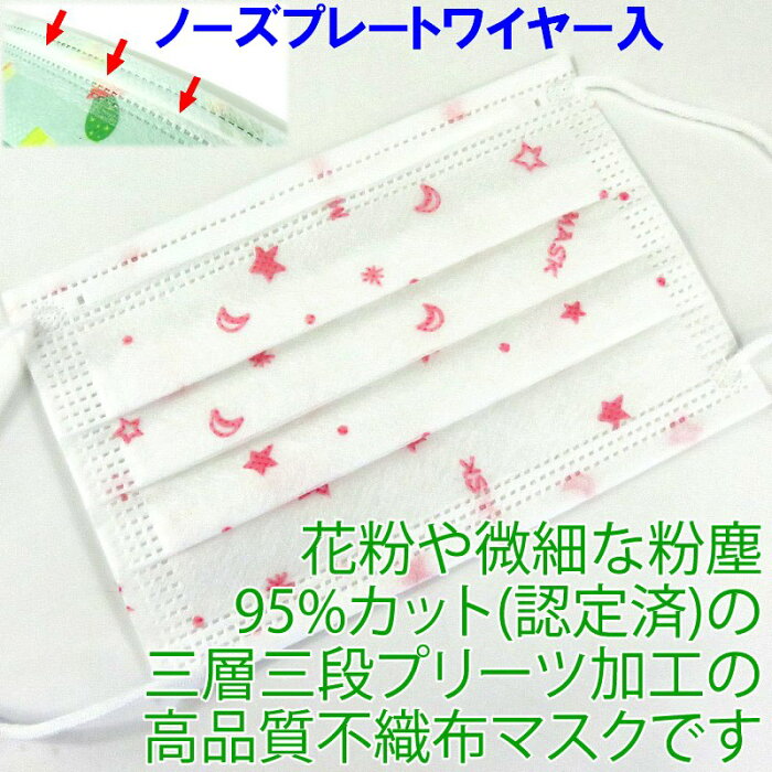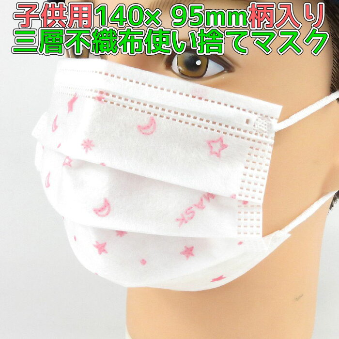 【即納 在庫あり】不織布 ノーズワイヤー入 子供用キッズマスク 小さめ 3層構造合わせ 14cm高学年向け 小さめマスク【月星 ピンクスター夜空柄】10枚セット 花粉症対策 風邪などのウィルス感染症対策に
