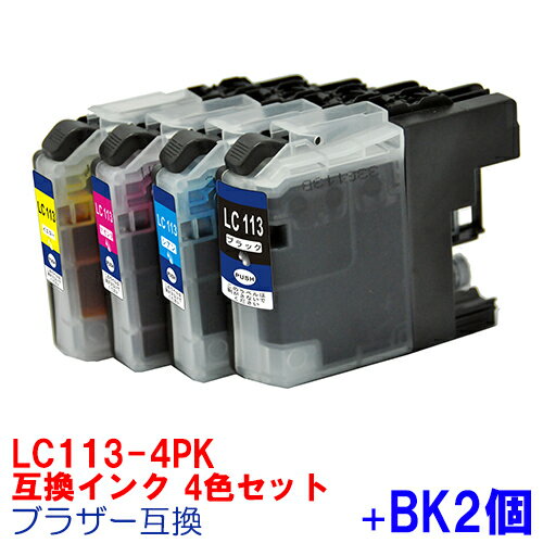 【時間限定クーポン配布】LC113-4PK + BK2 BROTHER ブラザー 用互換 インクカートリッジ プリンターインク 4色セット+黒2本 LC113 LC113BK LC113C LC113M LC113Y MFC-J6975CDW MFC-J6970CDW MFC-J6770CDW MFC-J6570CDW